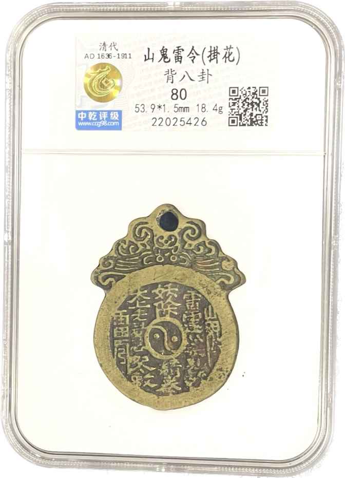 清朝「山鬼雷令」掛花錢,背八卦