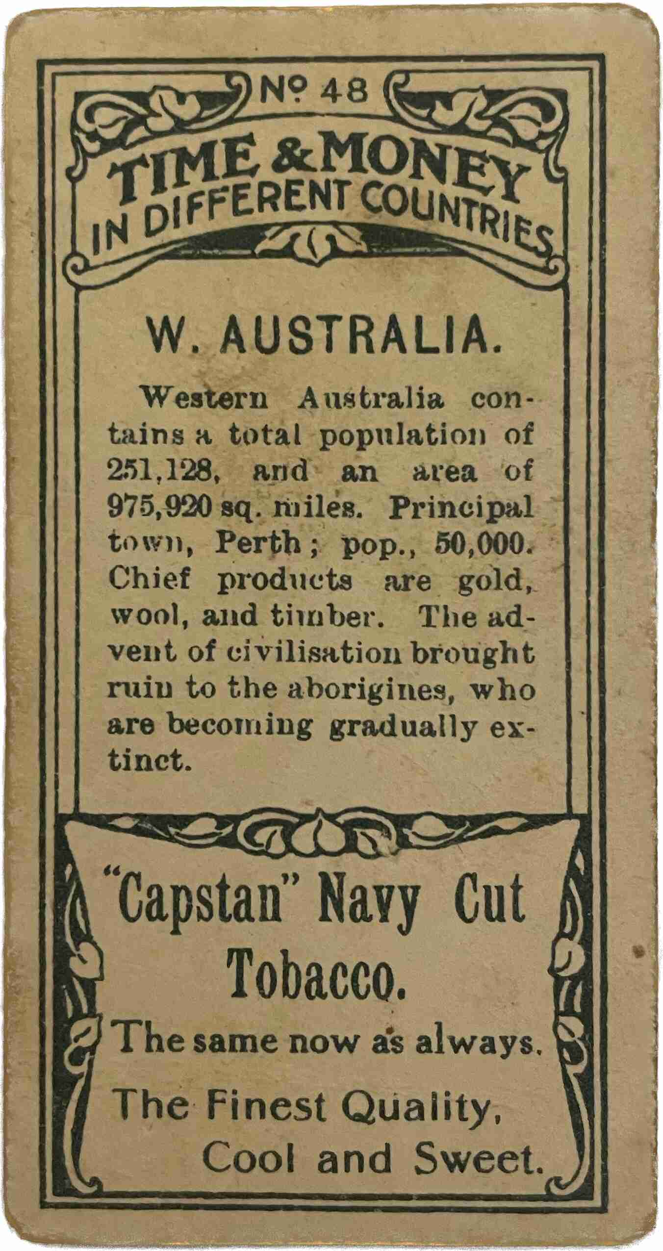 請注意,這些卡片爲當時代的產物。其中一些卡片可能描繪了當時常見的圖像或文本,但內容在現今被認為是不可接受的。